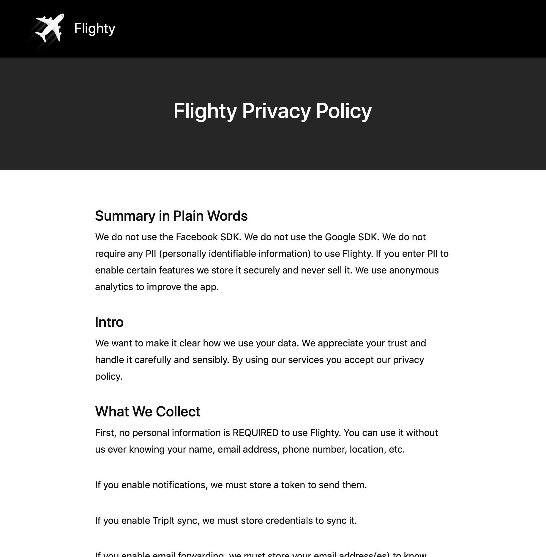 Flighty App On Twitter Our Privacy Policy Uses Plain Words And Has A Summary Https T Co Fkohsxjbyc