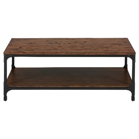 Claremont Rustic Wood Coffee Table With Low Shelf Dark Brown Alaterre Furniture Target