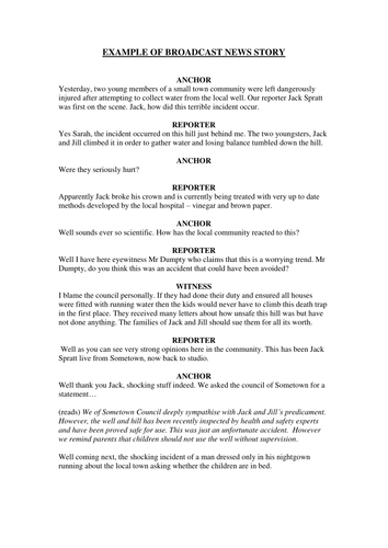 Fairy Tale News Report Script Short Scripts Fairy Tales Script