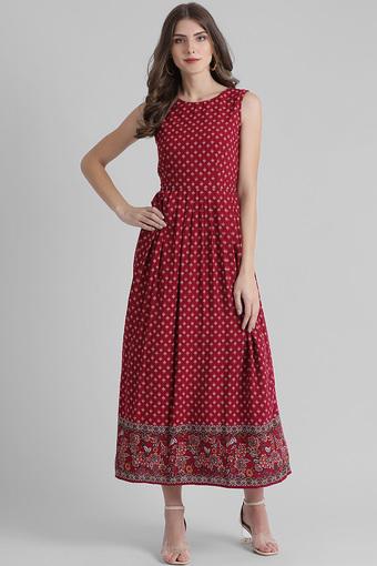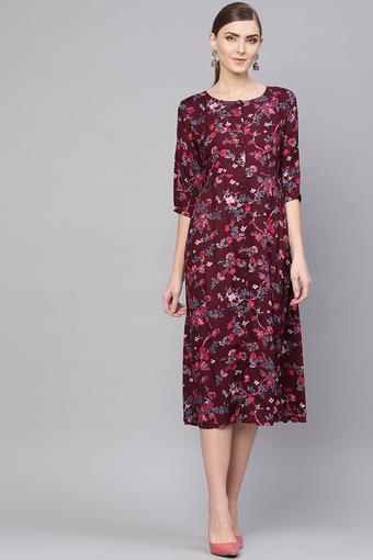Buy Gerua Womens Round Neck Printed Knee Length Dress Shoppers Stop