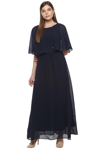 Buy Madame Womens Round Neck Solid Embellished Cape Maxi Dress Shoppers Stop