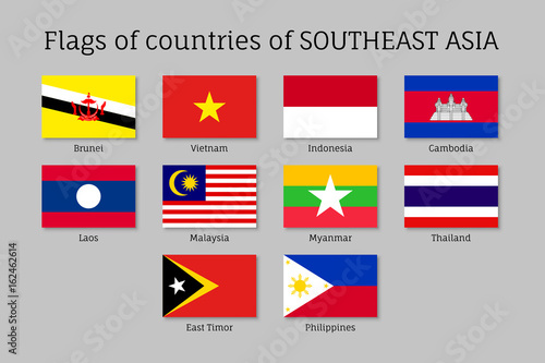Set Of Flat Flags Of Members Of Asean Economic Community Aec Laos Thailand And Vietnam Malaysia And Philippines Signs Of Southeast Asia States Vector Isolated Icons Buy This Stock Vector And