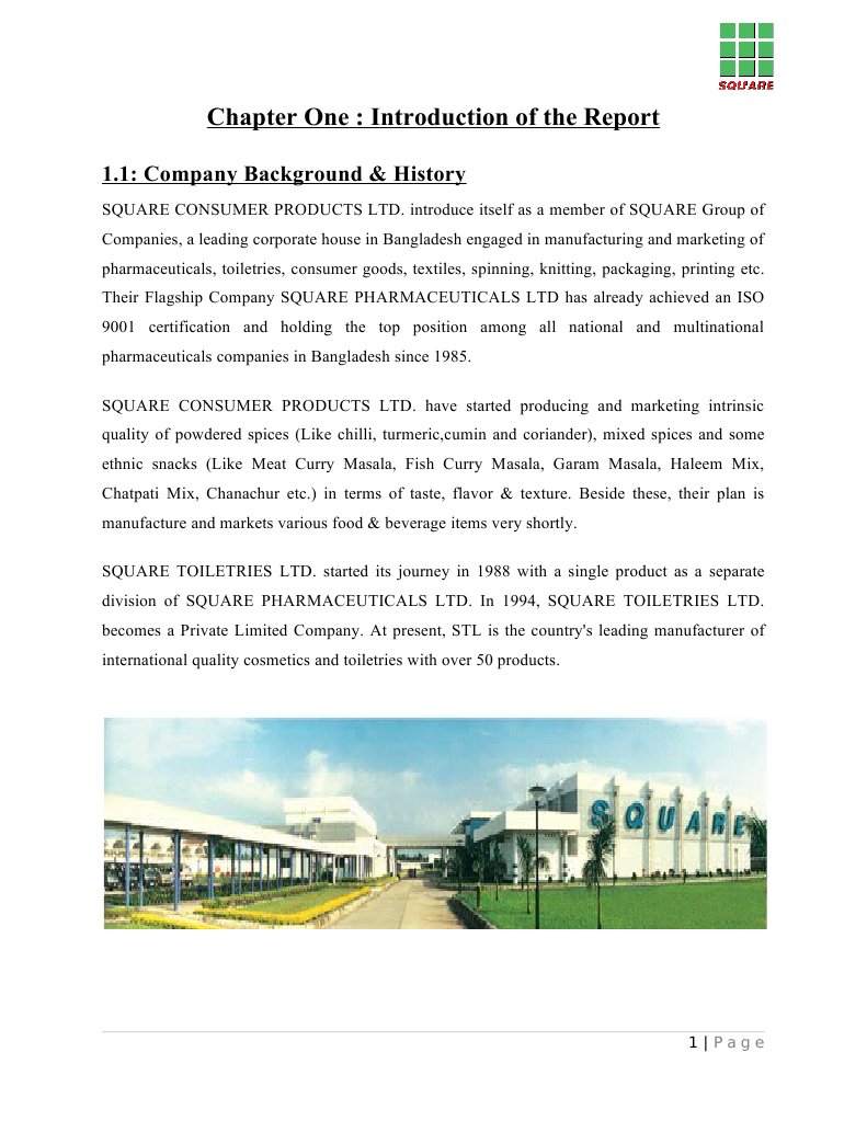 Marketing Report On Square Consumer Products Ltd