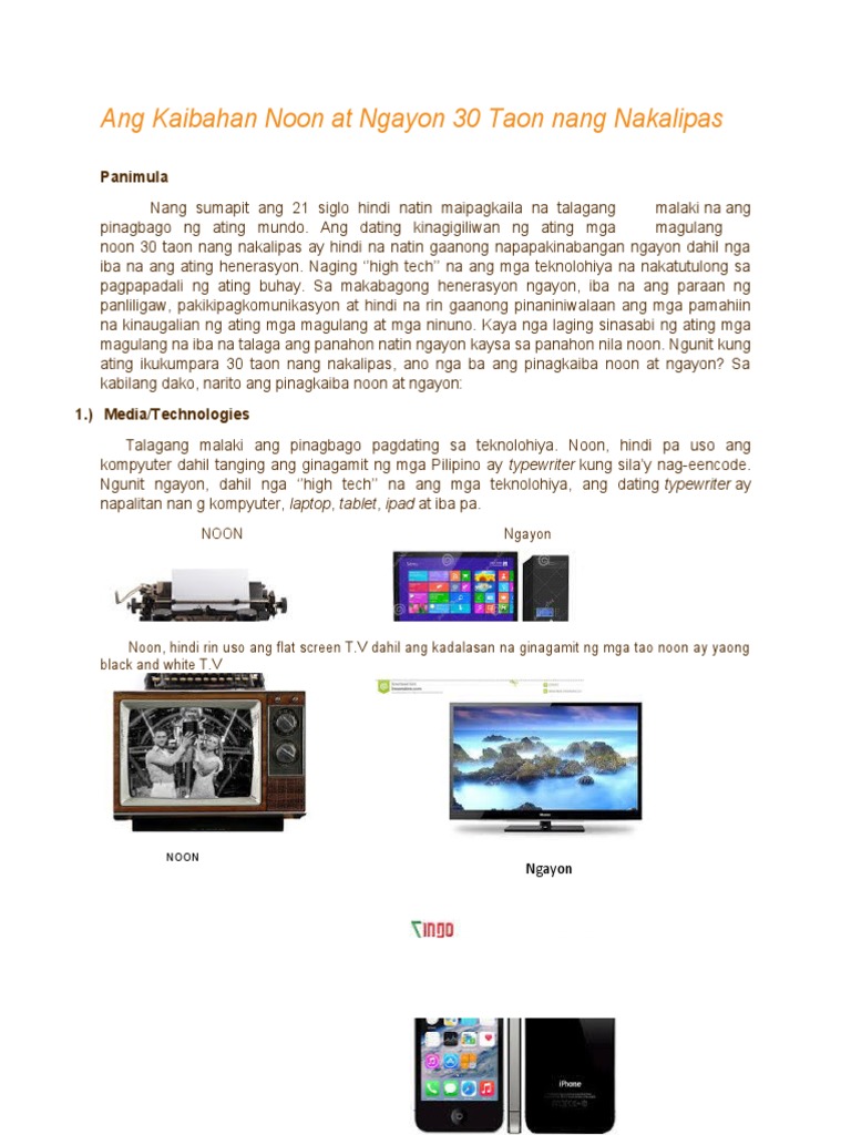 Ang Kaibahan Noon At Ngayon 30 Taon Nang Nakalipas Panimula