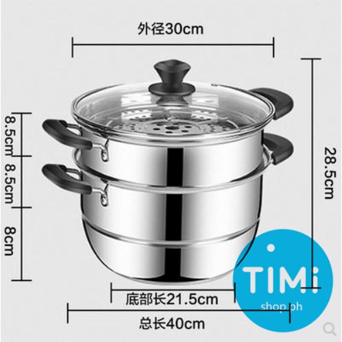 Timi 28cm 30cm Steamer 2 Layer Stainless Steel Multi Function W Steaming Pan Shopee Philippines